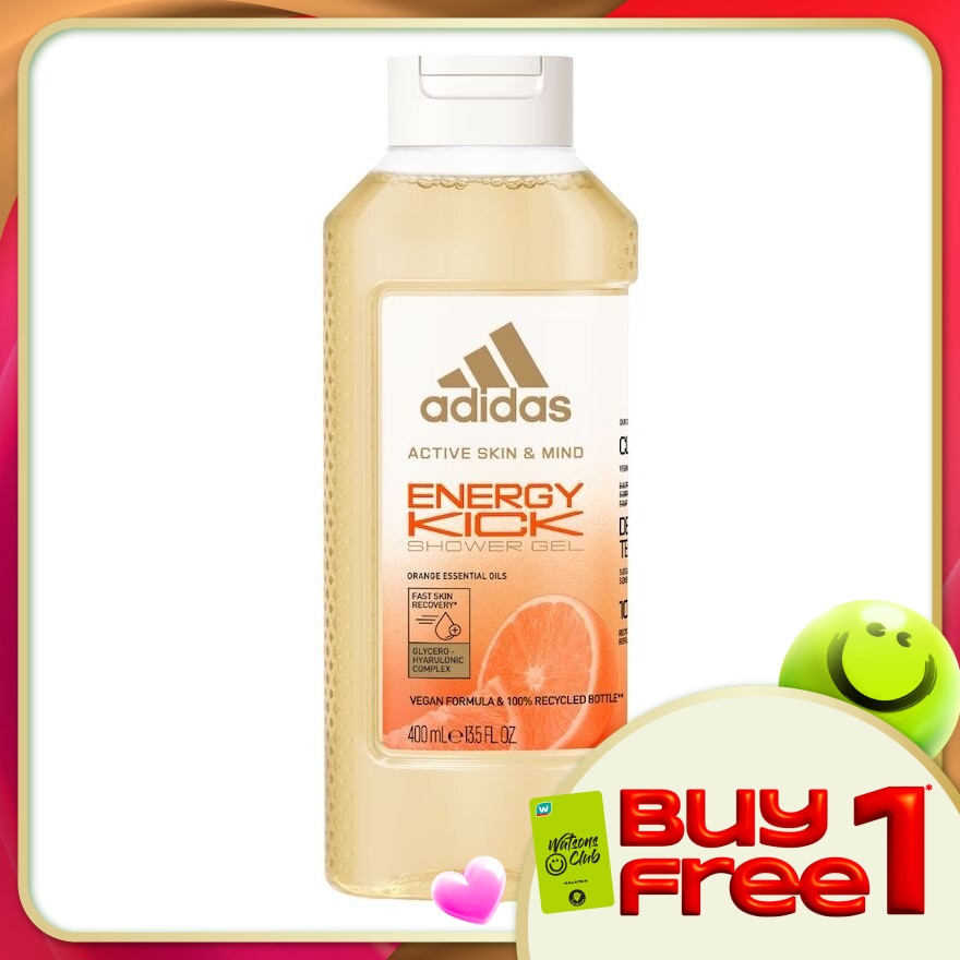 Give exercise your best shot with the new adidas shower gel active skin & mind range. developed together with sports scientists, the high-impact formulas are designed to reinvent your daily care routine. Active skin & mind energy kick shower gel helps to awake your senses thanks to its energizing fragrance featuring orange essential oil. committed to athletes, the shower gel is dermatologically tested & free from sulfate-based sufactans. The clean & vegan formula is suitable for even sensitive skin types.committed to the planet, the formula is 98% biodegradable and the bottle is 100% recycled (excl. additives, cap & label) and refillable.