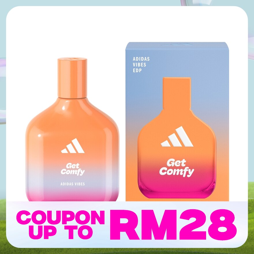 Feel the vibe and embrace comfort with the new adidas fragrance: Vibes Get Comfy Eau de Parfum. Proven to make you feel positive*, this scent offers a calming and warming experience for those moments when you just want to hang out and relax. Infused with notes of Vanilla and Mandarin, it’s designed to uplift your spirits. This long-lasting fragrance features orange natural essential oil, a vegan formula, and is dermatologically tested for your peace of mind. Plus, the packaging is eco-friendly, made from 96% post-consumer recycled materials, including 25% PCR glass and FSC-certified cartons. Discover the full Vibes fragrance collection, featuring six mood fragrances designed for everyone. 81% agreement in a consumer test of 106 participants.96% PCR CAP, 25% PCR Glass, FSC carton