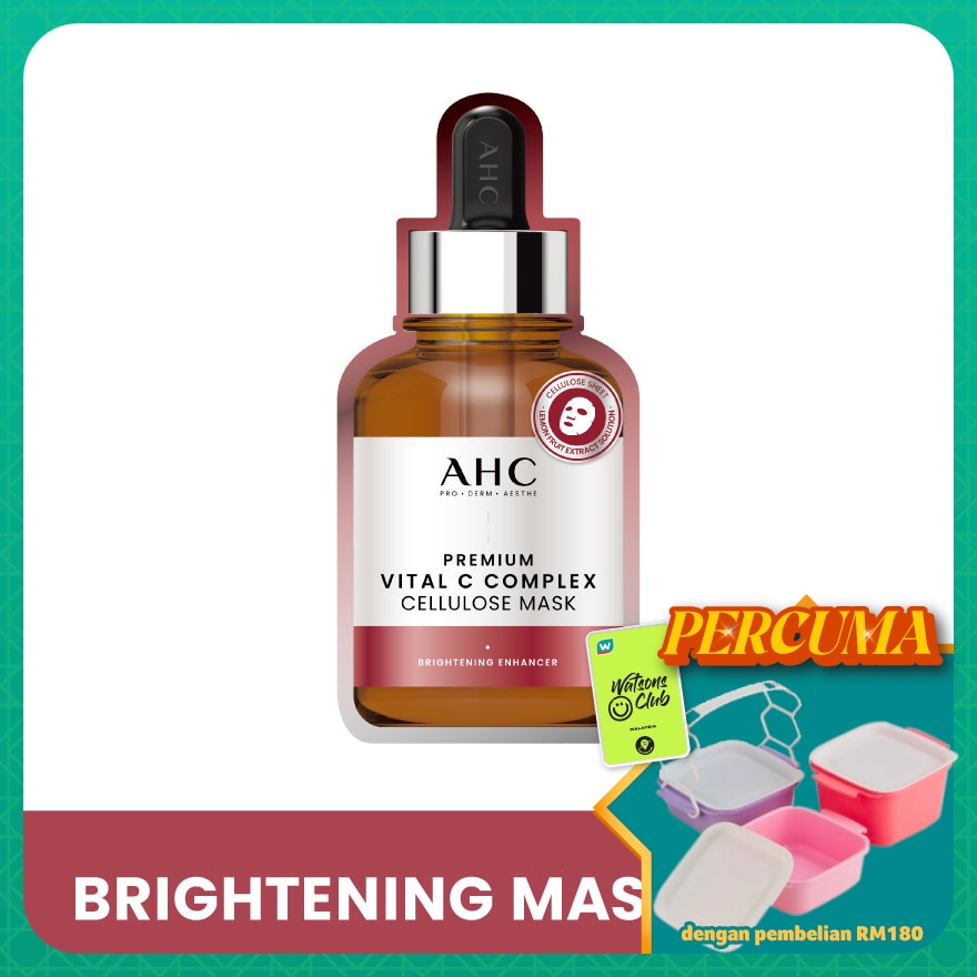 AHC PREMIUM VITAL C COMPLEX CELLULOSE MASK 27ML is a brightening mask that cares a natural clean and clear skin tone. Comes with vitamins contained in lemon extract and functional materials that help vitalize and brighten skin are absorbed into dull skin to make it glowing and flawless. It also helps skin stay fresh with its soothing and energizing functions.