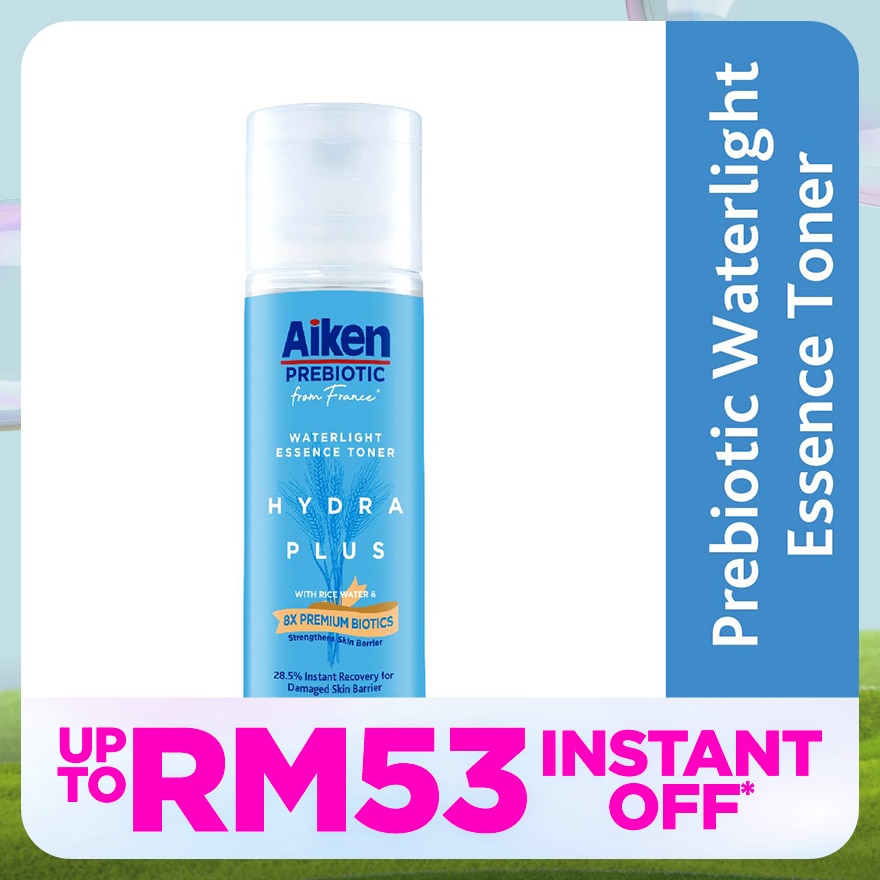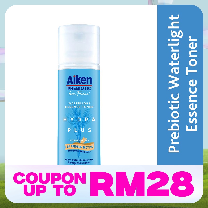 Pour into palm and gently pat Aiken Prebiotic Hydra Plus Essence water onto freshly cleansed face. Use twice daily. Avoid direct contact with eyes. Follow with Aiken Prebiotic Hydra Plus Moisturiser for optimal result.