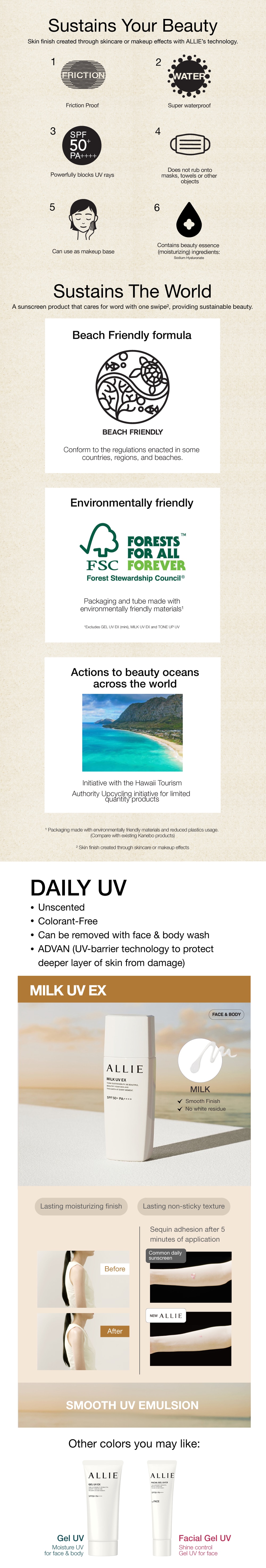 Apply evenly to your face as the last step in your skincare routine. Reapply frequently to maintain protection, especially after sweating, swimming and towelling. Use Enough to achieve adequate UV protection against UV rays. Removable with daily make up remover.