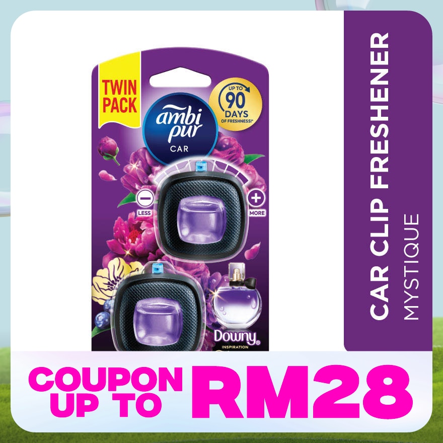Car Fresh Refreshing Downy scent ensures a continuous fragrance with real perfume and nature-inspired scents to enhance your surroundings. Ensure a relaxing end to the day, everyday.