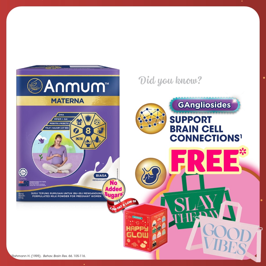 The Number 1* Pre-natal Milk Brand in Malaysia The Only Maternal Milk with Gangliosides and No Added Sugars**. This milk powder for pregnant mothers or maternal milk is scientifically formulated with DHA, MFGM + Gangliosides, Prebiotic, Probio DR10, with Key Nutrients including Folic Acid, Calcium and Iron to support increased nutritional needs of pregnant mums.