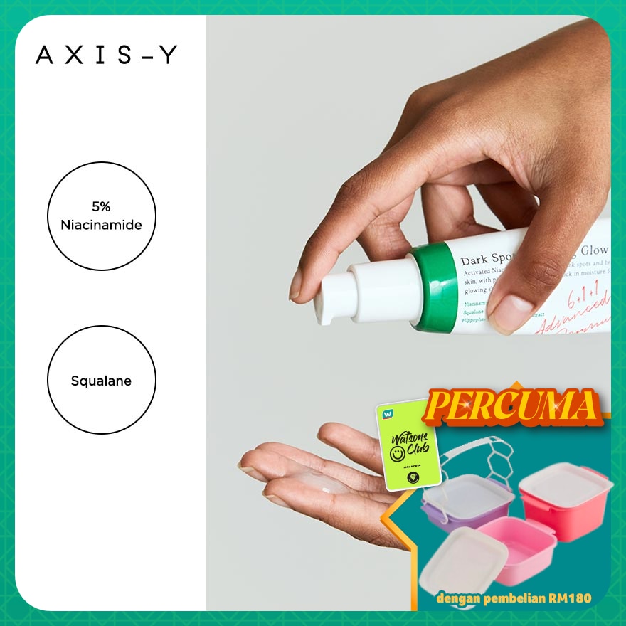 1. Apply 2-3 pumps of AXIS-Y Dark Spot Correcting Glow Serum to the entire face or problem areas. 2. Pat the skin gently for optimal absorption
