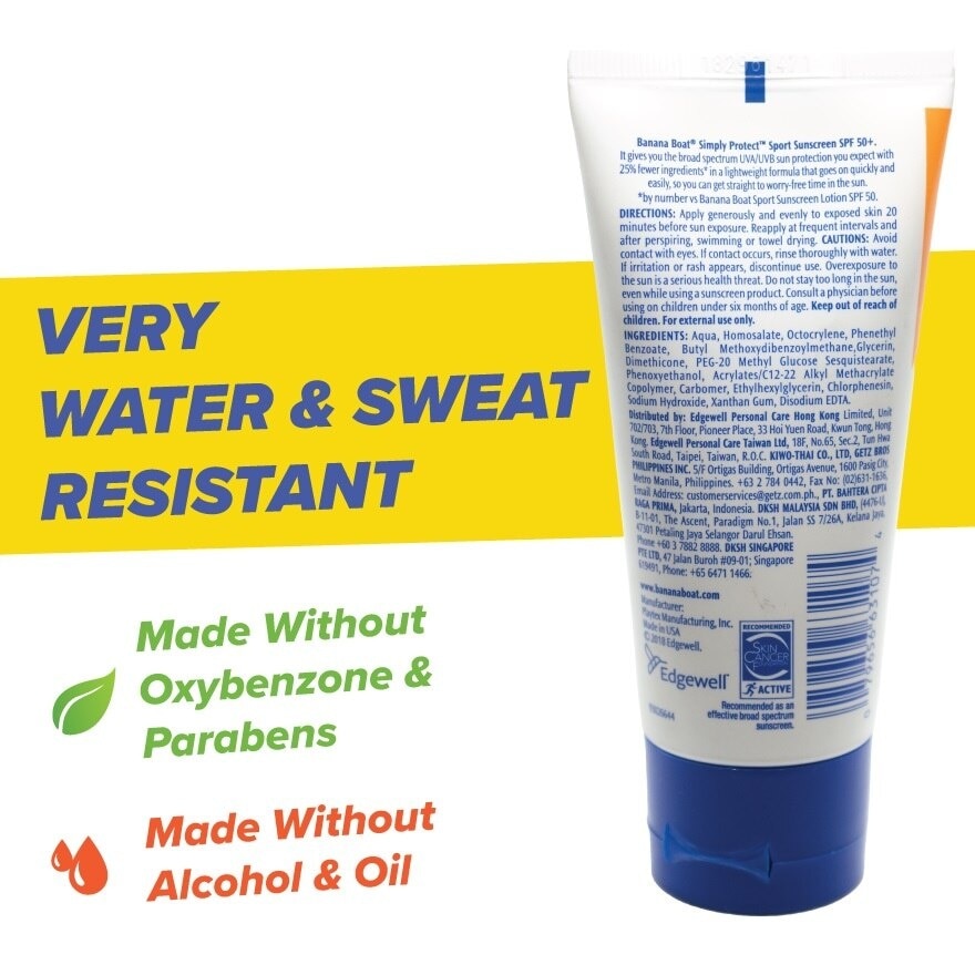 Banana Boat Sport Performance Sunscreen provides water- and sweat-resistant protection. Patented AvoTriplex technology helps prevent sunburn and skin damage while the Active Dry Protect formula delivers quick absorption and a non-greasy feel.