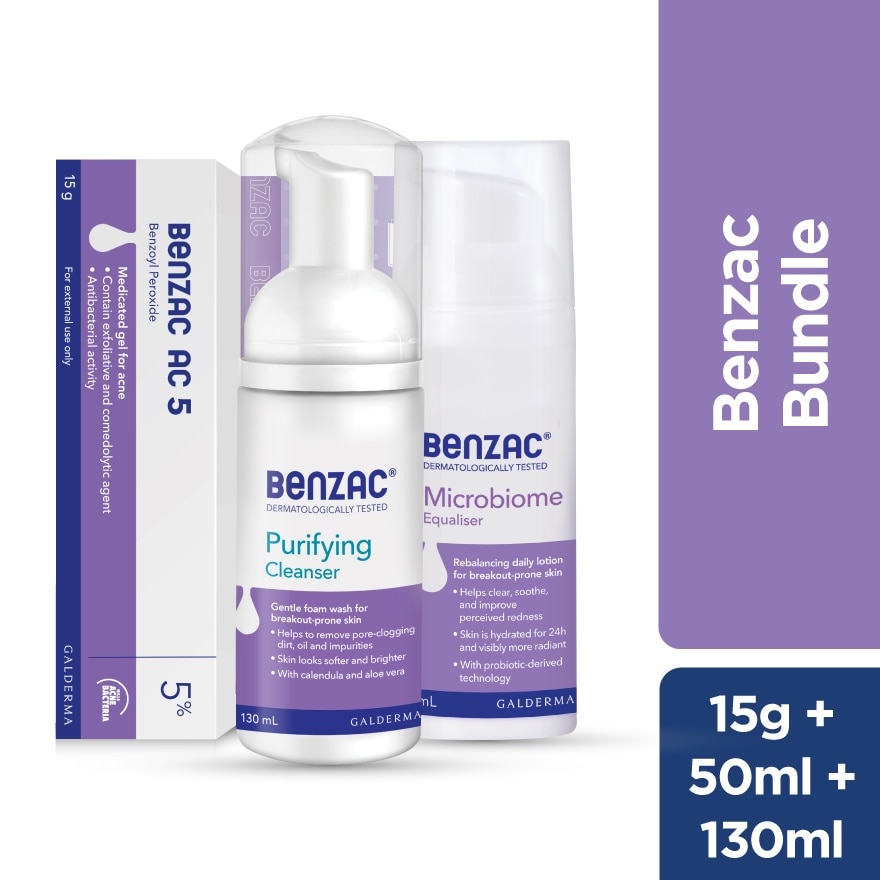 As the first step in your acne routine, simply wet your skin then apply Daily Facial Foam Cleanser, massaging it in using your hands, day and night. Wash your face then pat the skin dry before applying your chosen acne treatment then finishing with a moisturizer. Don't forget to cleanse your neck, either. Benzac AC Gel is a spot treatment and should only be applied to affected areas. Wash and dry your hands before applying the gel. As the third step in your acne routine, finish off with the Microbiome Equaliser Lotion to moisturise and protect your skin's natural barrier.