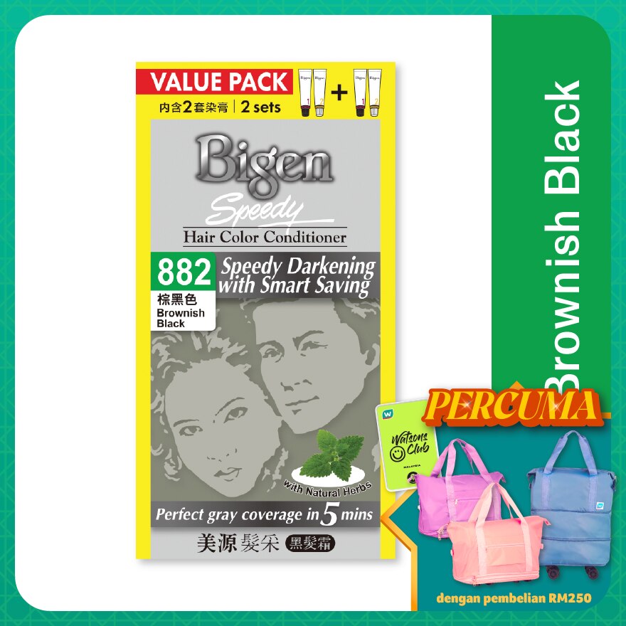 Bigen Speedy Hair Color Conditioner covers your gray hair in only 5 minutes (except for 855, 865, 875: developing time is 10 minutes). It contains 6 natural herbal extracts (balm mint, fennel, hops, chamomile, mistletoe and yarrow), which reduces the damage on your hair. It comes with applicator comb that helps to ease the application of hair dye onto the hair. This smart saving and economical hair dye can be kept for future usage.
