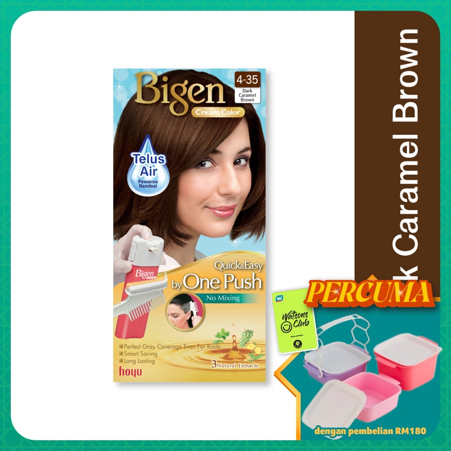 Bigen Cream Color is designed especially for women who want to color hair easily and quickly. It takes just a press of a finger to dispense the two cream simultaneously onto the Special Comb Brush. Your preparation is now simpler because there is no need to premix the two creams anymore. The remainder cream can be stored, so that it is very economical. Bigen is a Quick, Easy and Convenient way to color your hair and cover your gray as you wish.