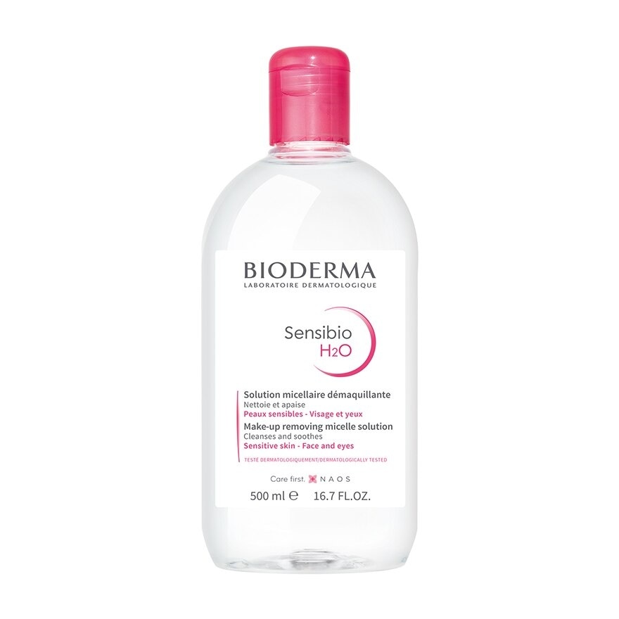 - Soak a cotton pad with Sensibio H2O micellar water and cleanse face, eyes, lips and neck.