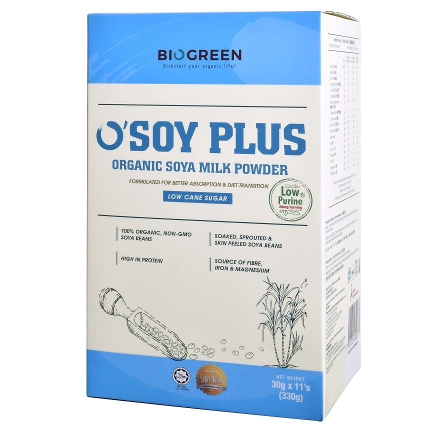 Biogreen O Soy Plus Organic Soya Milk is made from organically-grown soya beans using a combination of traditional and advanced technologies to preserve its nutritional value. The soya beans are 100% peeled, which lowers its purine content and yielding a smoother texture, thus helps to lower the risk of gout problems caused by purine. Moreover, research studies have found that soya isoflavones (68mg/100g) are efficacious in improving menopausal symptoms and possibly lower risk of developing chronic diseases. The added oligosaccharides serve as prebiotics to promote the growth of beneficial bacteria in the intestine and hence improve digestive health. Let’s enjoy the natural taste of organic soya milk!