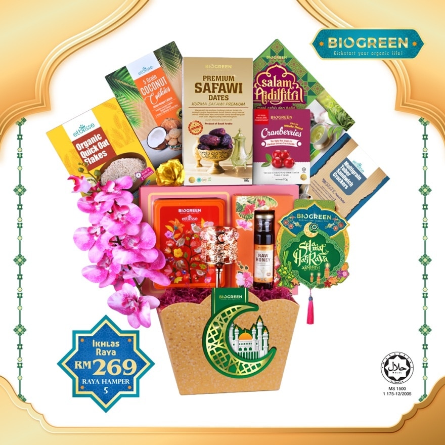 Premium Crystal Candle Holder, Biogreen Premium Safawi Dates 180g (Arab Saudi), Raw Honey 220g, PAC-37 Whole Dried Cranberries 110g, Etblisse Soy Mocha 6's x 30g (Prosperous Can), Organic Green Tea 2g x 15's, 5 Grain Chocolate Coconut Cookies (Box) 16x10g, Organic Quick Oat Flakes 500g, Multigrains Tuber Sandwich Crackers 10x19g (Box), Salam Ketupat (Soy Mocha 30g 30g + Pink Lady Oatmilk 30g) (This item does not support East Malaysia)