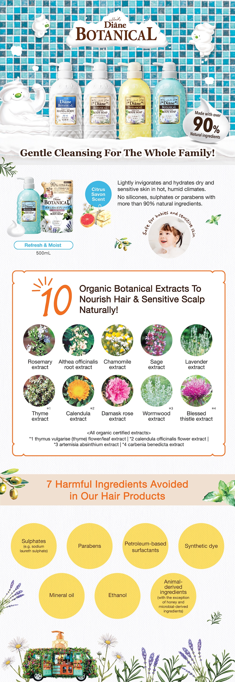 Gentle Olive Oil Cleansing. Enriched with organic Moroccan Argan Oil, Shea Butter and premium Toscana (Italy) Olive Oil, this botanical body wash creates a mild rich lather that gently removes impurities while nourishing the skin. With over 90% naturally derived ingredients and free from 7 harmful additives, this moisturizing wash is suitable for sensitive skin and babies to use. Protects Skin with Natural Botanicals. Contains Apple Mint that refreshes and moisturizes skin, Lemongrass that provides anti-inflammatory and anti-bacterial protection and Bilberry that naturally beautifies and delivers deep hydration for softer, supple skin. Refreshing Citrus Savon Scent. Long-lasting fresh scent of uplifting citrus and sophisticated French soap that reinvigorate the senses.