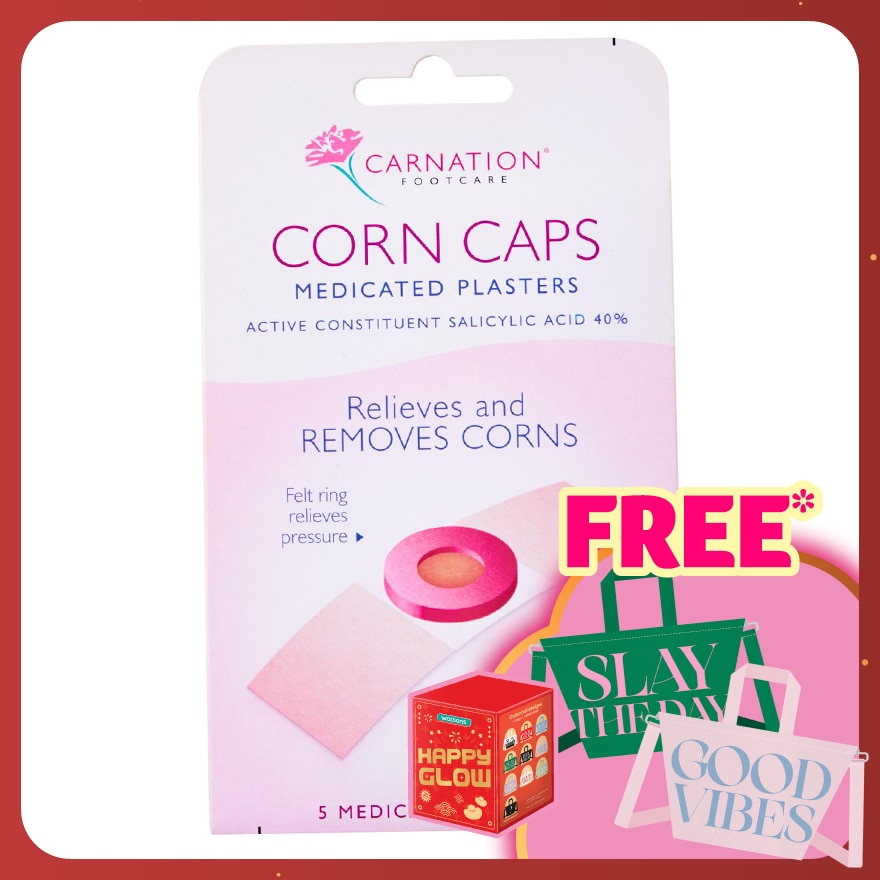 Carnation Corn Caps are clinically proven to remove corns within a 10 day treatment period . Combine a measured dose of Salicylic Acid Ointment wth a soft felt corn ring to relieve pressure whilst the corn is treated. Salicylic Acid loosens the intracellular cement holding hardened skin together allowing it to flake away, softening and loosening the nucleus to allow clean removal.