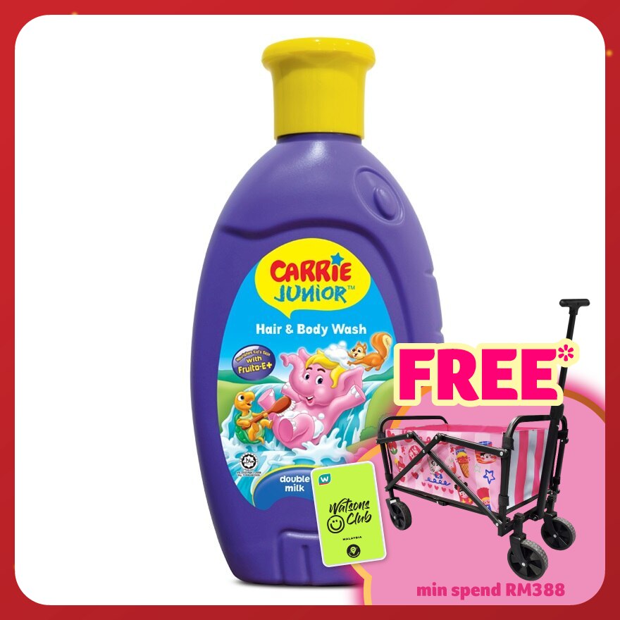 CARRIE JUNIOR has Colourful and eye catching packaging in vibrant colour and elephant toe bottle shape to attract kids. For Gentle And Effective Cleansing Of Baby'S Hair And Entire Body, Carrie Junior Baby Hair & Body Wash Is Enchanced With Fruito-E.