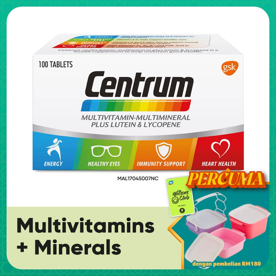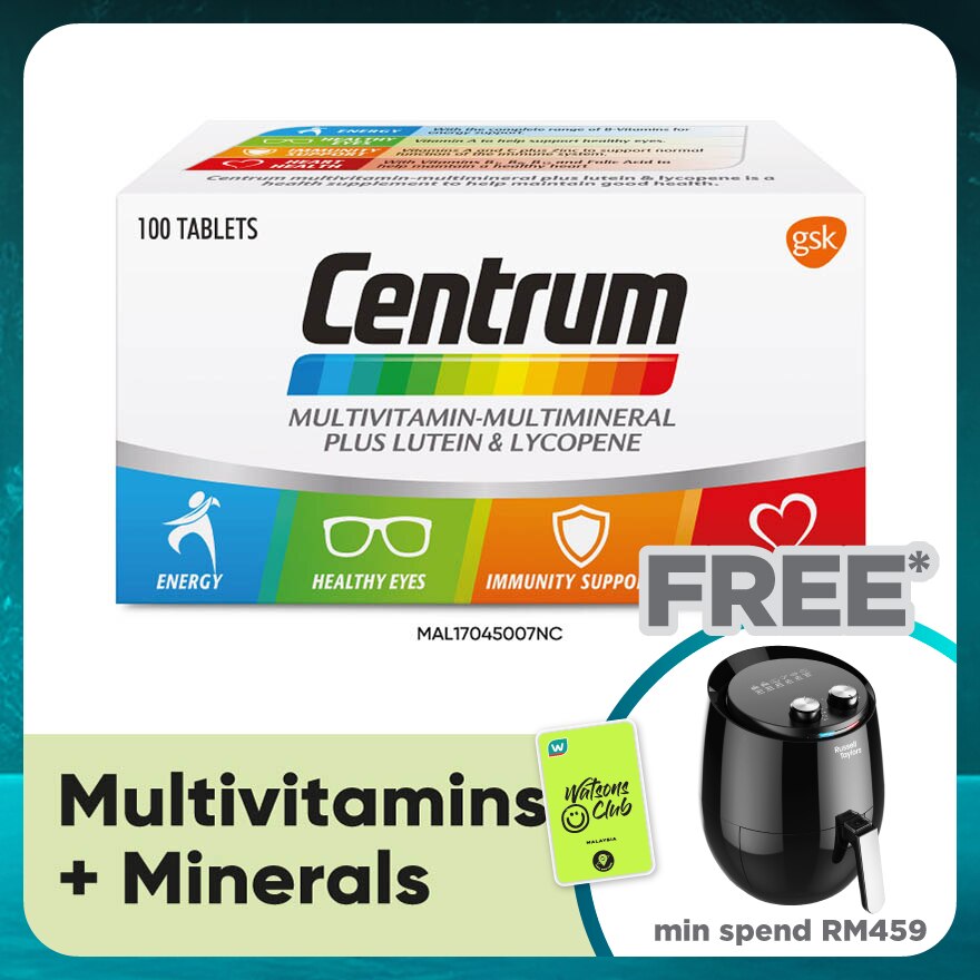 Each tablet contains: Lutein (500 mcg), Lycopene (600 mcg), Iron (5 mg), Potassium (80 mg), Pantothenic Acid (10 mg), Vitamin A (4000 IU), Calcium (200 mg), Vitamin D3 (600 IU), Phosphorus (50 mg), Vitamin B1 (1.77 mg), Chromium (35 mcg), Vitamin B2 (3.2 mg), Copper (0.5 mg), Vitamin B6 (5 mg), Iodine (150 mcg), Vitamin B12 (22 mcg), Manganese (3.5 mg), Vitamin C (90 mg), Magnesium (50 mg), Vitamin E (50 IU), Nicotinamide (15 mg), Vitamin K1 (25 mcg), Selenium (55 mcg), Folic Acid (400 mcg), Zinc (7.5 mg), Biotin (45 mcg)