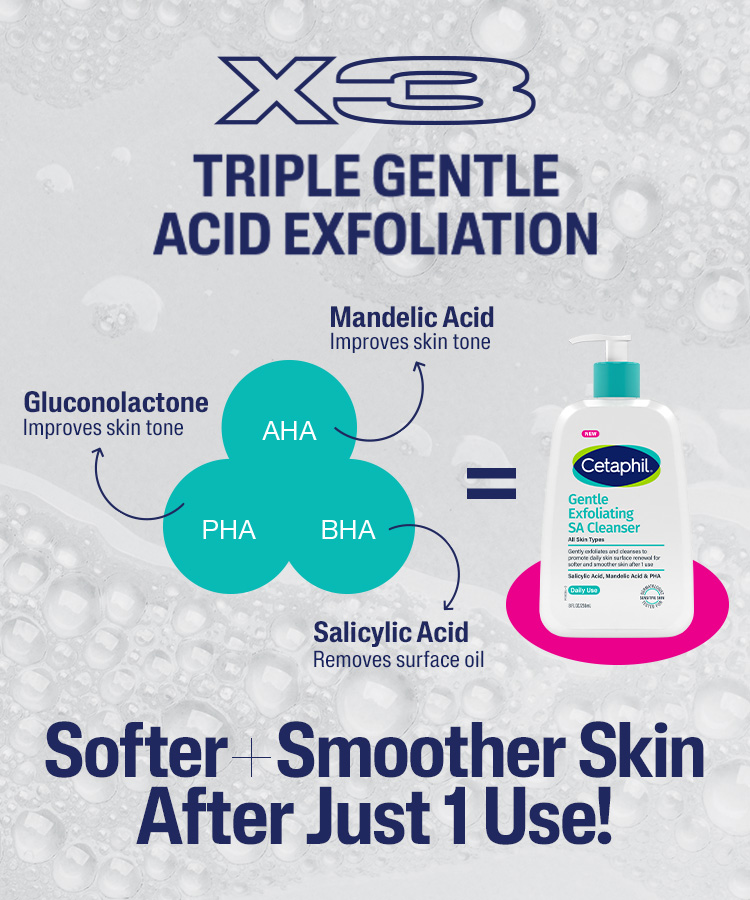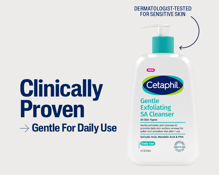 CETAPHIL GENTLE EXFOLIATING SA CLEANSER: Gently cleanses and exfoliates to promote surface skin cell renewal for smooth, even and radiant-looking skin after just 1 use