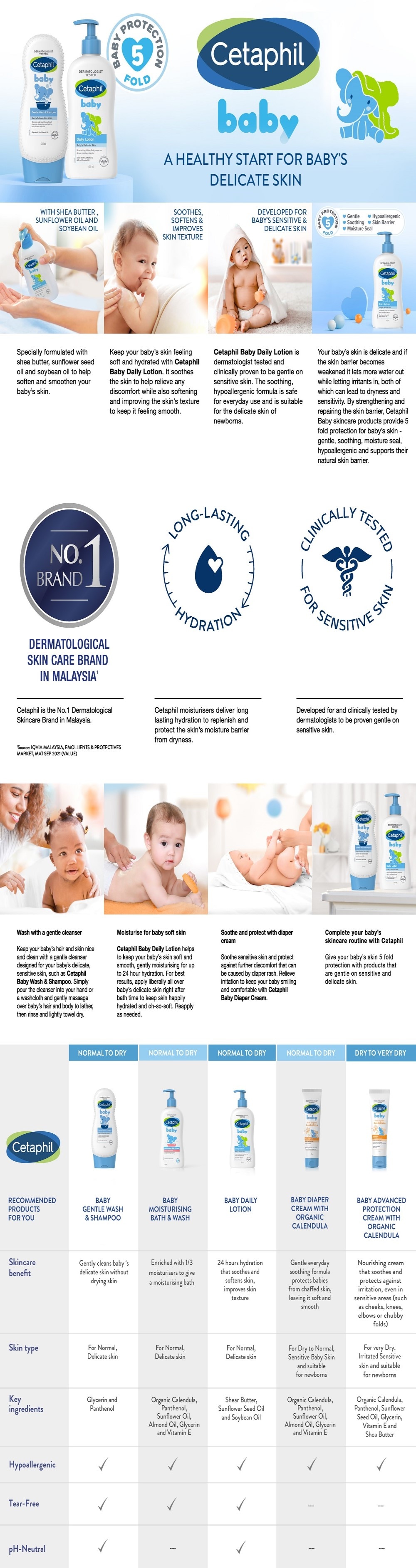 • Clinically proven to keep baby’s delicate skin hydrated for 24 hours