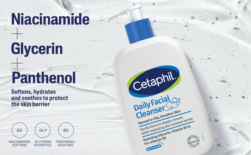 This deep cleansing, gel formula with Hydrating Glycerin, Vitamin B3 & Pro-Vitamin B5 gently foams to cleanse while respecting the skin moisture barrier.