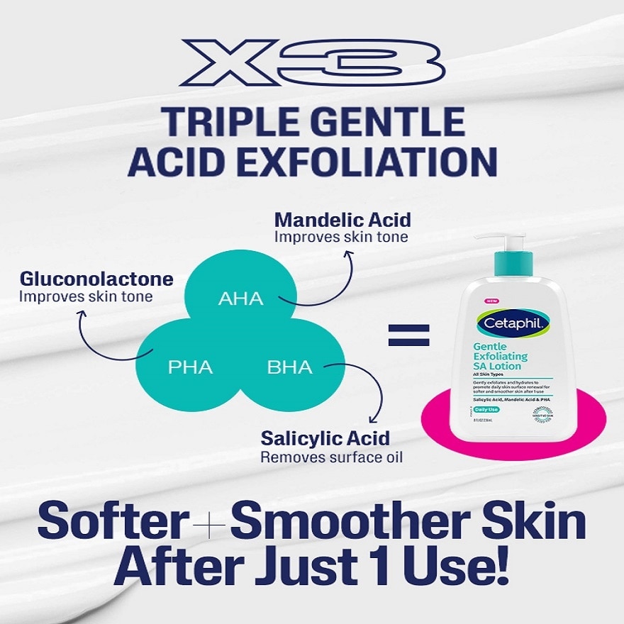 CETAPHIL GENTLE EXFOLIATING SA LOTION: Gently cleanses and exfoliates to promote surface skin cell renewal for smooth, even and radiant-looking skin after just 1 use