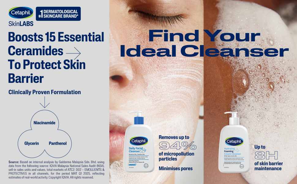 Gentle yet powerful foaming face cleanser, clinically proven to effectively remove dirt, oil and makeup without drying the skin barrier