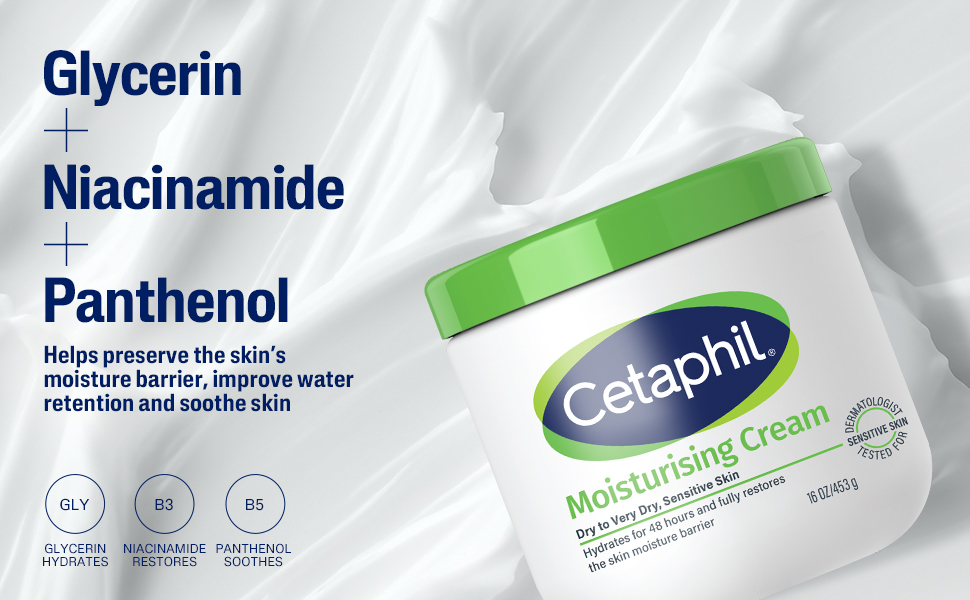 For all your moisturising needs. Cetaphil Moisturizing Cream is a great face & body moisturizer for you and your family. Its dermatologist-trusted formula contains extra-strength emollients and humectants that binds water to the skin preventing moisture loss and providing long-lasting hydration.