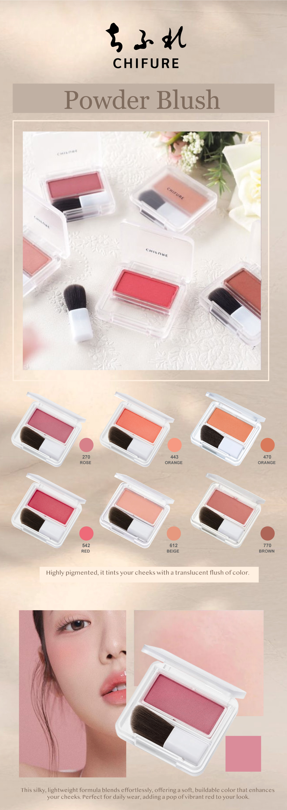 This powder blush gives your skin a lit-from-within color and natural glow. Highly pigmented, it tints your cheeks with a translucent flush of color. Chifure Powder Blush is long-lasting and glides onto the skin for a radiant, natural-looking finish.