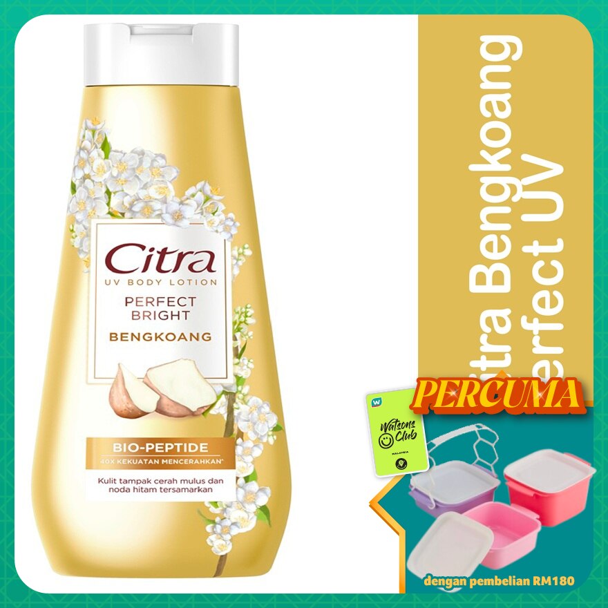 Introducing the Citra UV Body Lotion Perfect Bright Bengkoang, a luxurious blend of nature and science designed to pamper your skin. This 210ML bottle of Citra body lotion, known for its expertise in natural skin care solutions, combines the brightness of Bengkoang with the power of Bio-Peptide to offer you a skin that not only looks radiant but feels irresistibly smooth to touch. Imagine your skin rejuvenated with the essence of Bengkoang, a natural ingredient known for its brightening properties, enhanced by Bio-Peptide that helps to smooth out imperfections and improve skin texture. Perfect for daily use, this lotion absorbs quickly without leaving a greasy residue, making your skin feel hydrated and looking luminous. With each application, experience a subtle glow and a softness that beckons the touch. Ideal for all skin types, Citra's UV Body Lotion is your go-to for a healthy, glowing complexion that stands out in any crowd.