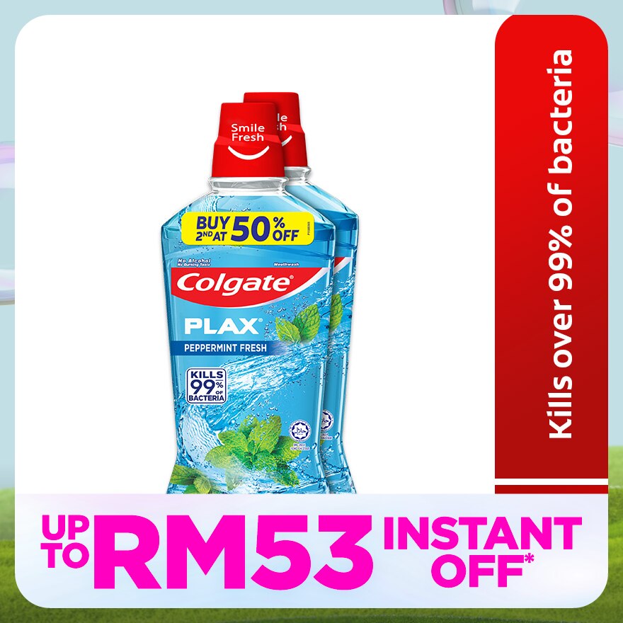 Colgate Plax Peppermint prevents cavities, freshens your breath and kills up to 99.9% of bacteria lurking in your mouth – all without any annoying burning sensation. • Kills bacteria by up to 99.9%, Provides up to 64% healthier gums*, Contains Fluoride to help prevent cavities, Mint taste, provide long lasting fresh breath, No burning sensation, 12-hour protection against plaque and bacteria, Clinically Tested by Dentists.
