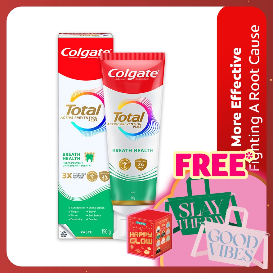 The new Colgate® Total Breath Health Toothpaste, for Active Prevention, helps to fight the root cause of 8 oral health problems - Gum Problems, Plaque, Tartar, Sensitivity, Enamel Erosion, Stains^, Bad Breath, and Cavities.
