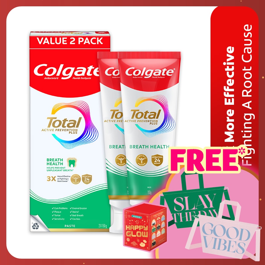 The new Colgate® Total Breath Health Toothpaste with Active Prevention Plus is 3x more effective at fighting a root cause* of top oral issues such as Gum Problems, Plaque, Tartar, Sensitivity, Bad Breath, and Cavities. Its Powerful, Patented, Preventative Technology is clinically proven to provide 24-hour antibacterial action**, which provides long-lasting benefits against bacteria to help prevent 8 oral care problems before they start.