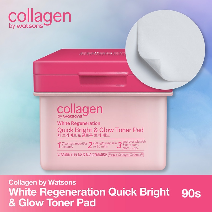 Collagen by Watsons White Regeneration offers all-round brightening solutions that protects against uneven skin tone and dullness while helping to restore plumpness, bounciness and elasticity. Vitamin C PLUS: Combines the proven power of 3 types of Vitamin C to brightens skin and help protects against hyperpigmentation and dark spots. Niacinamide: Rebalances skin tone, controls sebum production and strengthens the skin barrier.