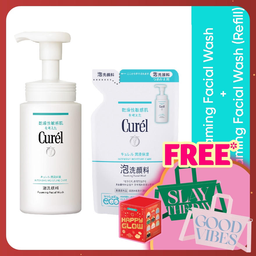 Dispense 2 pumps of Curél Foaming Facial Wash into your palm. Apply the foam onto wet skin. The light lather thoroughly removes impurities without washing away your skin’s natural ceramides. Gently pat dry. When you dont need to remove any makeup (i.e. in the morning), use the Foaming Facial Wash on its own.