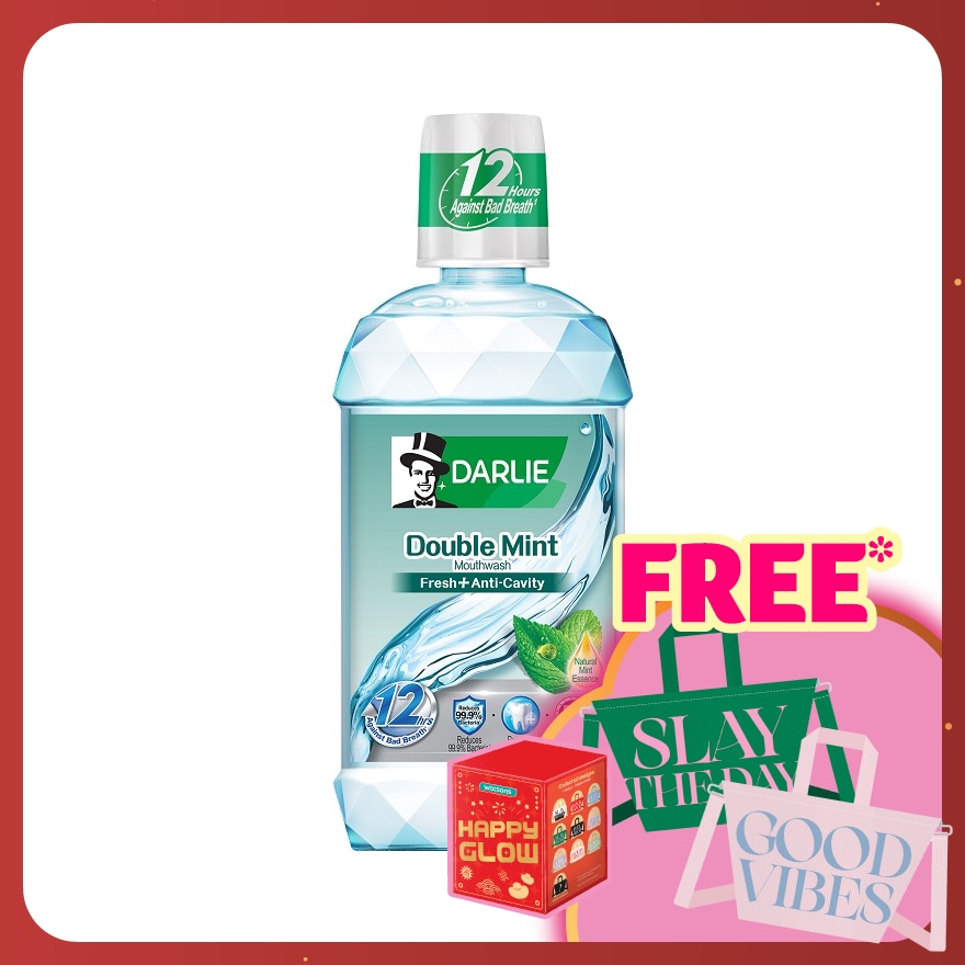 Darlie Double Mint Mouthwash is powered by CPC particles and fluoride to effectively kill 99.9% bacteria, prevent cavities and enhance oral health. Infused with natural Double Mint (Spearmint and Peppermint) keeps your breath fresh all day long.