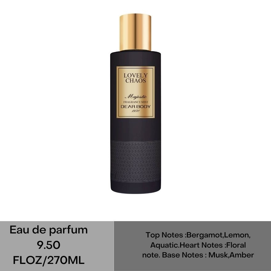 Lovely Choas Perfume - Top Notes :Bergamot,Lemon, Aquatic.Heart Notes :Floral note. Base Notes : Musk,Amber. Gentleman of the party, stylish and elegant in a black suit.