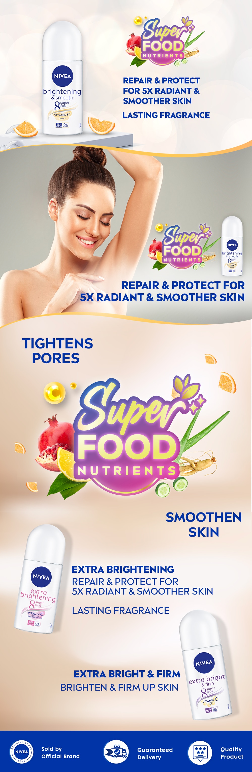 NEW NIVEA Brightening Deodorant repairs your skin to give you fairer underarms.