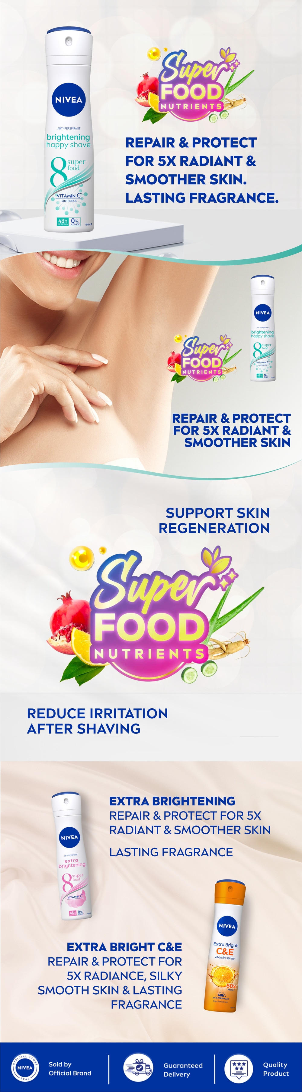 NIVEA DEODORANT BRIGHTENING HAPPY SHAVE not only whitens but also reduces irritation and helps repair underams skin.