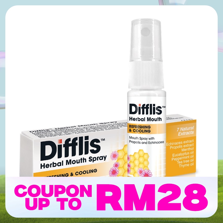 Difflis™  Herbal Mouth Spray contains 7 natural extracts, with key extracts such as propolis and echinacea, to provide a refreshing and cooling sensation to support your oral well-being.