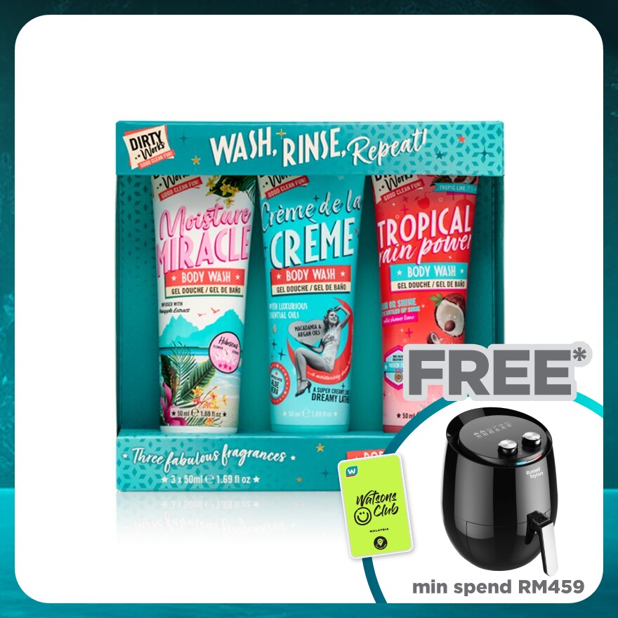 Creme de la Creme Body Wash: Water (Aqua, Eau), Sodium Laureth Sulfate, Cocamidopropyl Betaine, Sodium Chloride, Fragrance (Parfum), Phenoxyethanol, Glycerin, Styrene/Acrylates Copolymer, Macadamia Ternifolia Seed Oil, Disodium EDTA, PEG-150 Distearate, Benzyl Salicylate, Coffea Arabica (Coffee) Seed Extract, Benzophenone-4, Citric Acid, Limonene, Cymbopogon Schoenanthus Extract, Aloe Barbadensis Leaf Extract, Argania Spinosa Kernel Oil, Tropical Rain Power Body Wash: Water (Aqua, Eau), Sodium Laureth Sulfate, PEG-4 Rapeseedamide, Cocamidopropyl Betaine, Acrylates Copolymer, Glycerin, Parfum (Fragrance), Sodium Benzoate, Sodium Chloride, Citric Acid, Sodium Hydroxide, Allantoin, Cocos Nucifera (Coconut) Oil, Disodium EDTA, Coumarin, Potassium Sorbate, Passiflora Edulis Fruit Extract, Moisture Miracle Body Wash: Water (Aqua, Eau), Sodium Laureth Sulfate, Cocamidopropyl Betaine, Sodium Chloride, Fragrance (Parfum), Glycerin, Phenoxyethanol, Styrene/Acrylates Copolymer, Macadamia Ternifolia Seed Oil, Chlorphenesin, PEG-150 Distearate, Disodium EDTA, Benzophenone-4, Citric Acid, Ananas Sativus (Pineapple) Fruit Extract, Hibiscus Militaris Flower Extract, Hexyl Cinnamal, Limonene