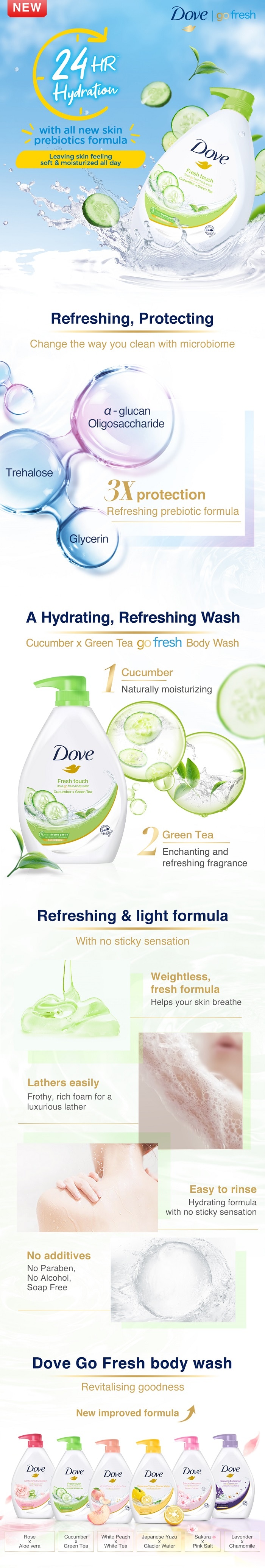 Squeeze the rich body wash into your hand and work it into a rich, creamy lather. Massage it over your skin concentrating on any areas that feel a little drier than usual. And then just rinse off, revealing soft, smooth skin.