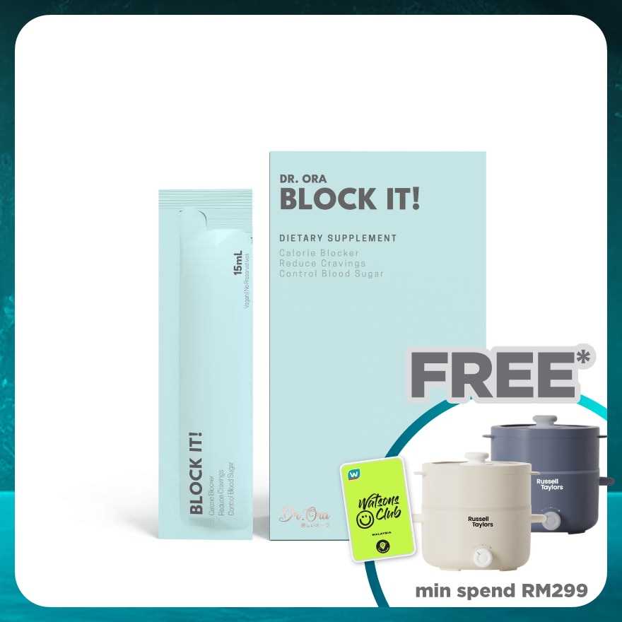 DR ORA Block It! Diabetic Friendly Carb Blocker (Calorie Blocker, Reduce Cravings, Prevents Food Coma) Sachets, 15ml X 10s Block It! Is An All Natural Carb Blocker That Contains Five Patented Ingredients, Clinically Proven To Reduce Calorie Absorption By Up To 66%* And Combat Lipogenesis. It Helps Block The Absorption Of Carbohydrates, Promotes The Breakdown Of Fats, And Regulates Glucose Levels To Stabilise Blood Sugar. The High Quality Proprietary Blend Of Garcinia Cambogia, White Kidney Bean, And Sake Less Blocks Calories And Carbohydrates While Reducing Sugar Cravings. African Mango Seed And Bitter Melon Help Regulate Glucose Levels, Stabilise Blood Sugar, And Decrease Insulin Resistance. It Is Diabetic-Friendly, Formulated Based On The International Diabetes Guideline. **Where applicable, items have a minimum of nine-month shelf life before expiry unless otherwise stated on product description.