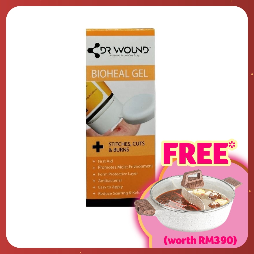 Bioheal Gel First Aid Gel 20ml contains chitosan biopolymer and is used to accelerates wound healing by promoting moisture, reduce scarring and reduce keloid formation.