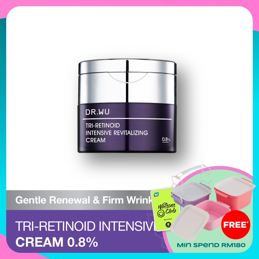 DR.WU Tri-Retinoid Intensive Revitalizing Cream 0.8% is formulated with the advanced Tri-Retinoid complex, consisting of Retinal, Retinol, and Retinyl Palmitate. This potent combination accelerates skin renewing procedures and effectively diminishes the appearance of rough texture, enlarged pores, and uneven skin tone. It also contains multi-peptides and Idebenone, which provide skin lifting effects and strengthen the skin barrier to minimize discomfort. The result is delicate, firm, and radiant skin, offering a younger and more revitalized appearance.