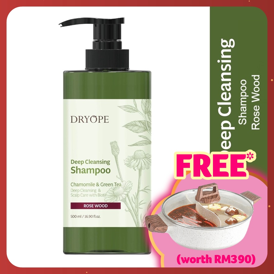 DRYOPE Deep Cleansing Chamomile & Green Tea Shampoo contain of 10,000ppm of Chamomile &Tea Tree Extract for Scalp soothing care and purifying. It also contain Biotin for scalp protection from pollutant and supply nutrition to our hair and scalp, 48 types of Extracts derived from Plant. Nutritional and moisturizing care with plant-derived ingredients.