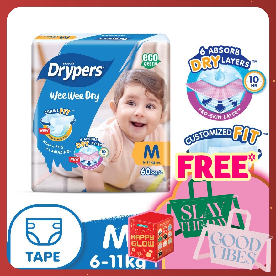 - 6 AbsorbDRY Layers™ with Lilac layer that absorbs quickly and distributes evenly. It effectively locks in urine and keep your baby skin dry and comfortable.