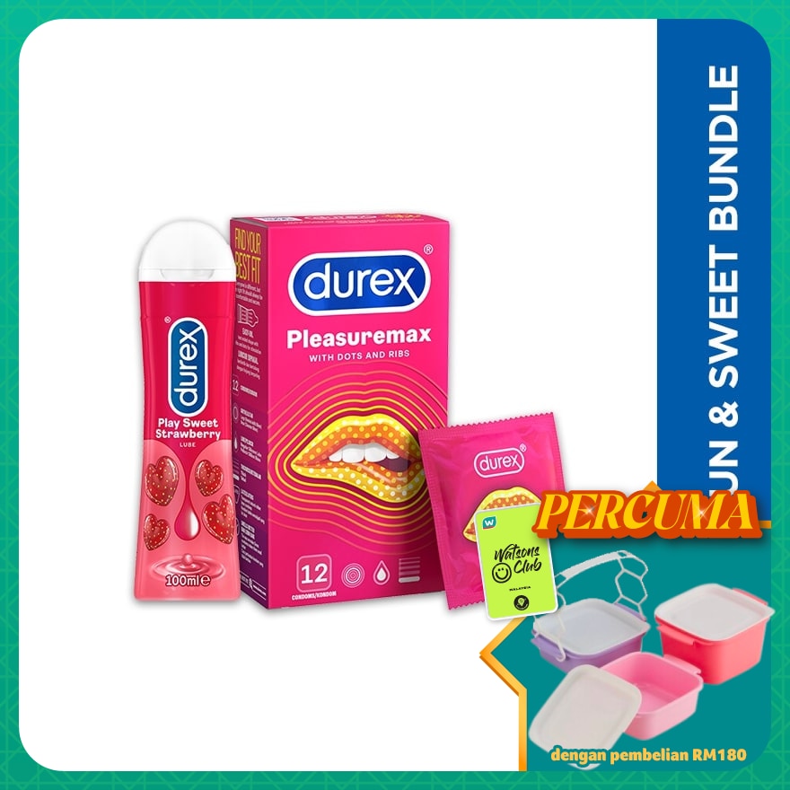 In this bundle, you will receive: 1x Pleasuremax Condoms 12's, 1x Strawberry Lube 100ml