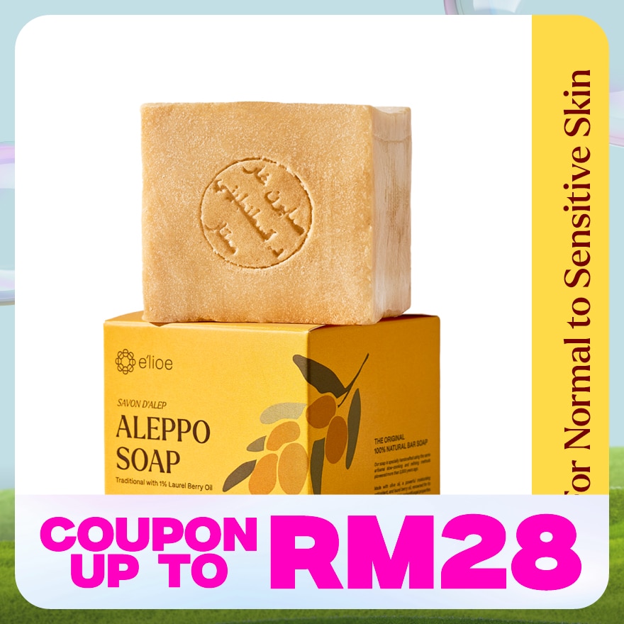 E'lioe Aleppo Soap with 1% Laurel Berry Oil is your everyday essential for gentle cleansing, while keeping skin and hair moisturised and radiant. It is formulated for all skin types including sensitive skin. Our soap is specially handcrafted using the same artisanal slow-cooking and refining methods pioneered more than 3,500 years ago. Made with olive oil, a powerful moisturising antioxidant, and laurel berry oil, renowned for its soothing, antibacteria, and antifungal properties. Use it daily to nourish, gently cleanse, and remove impurities from your face, body, and hair.