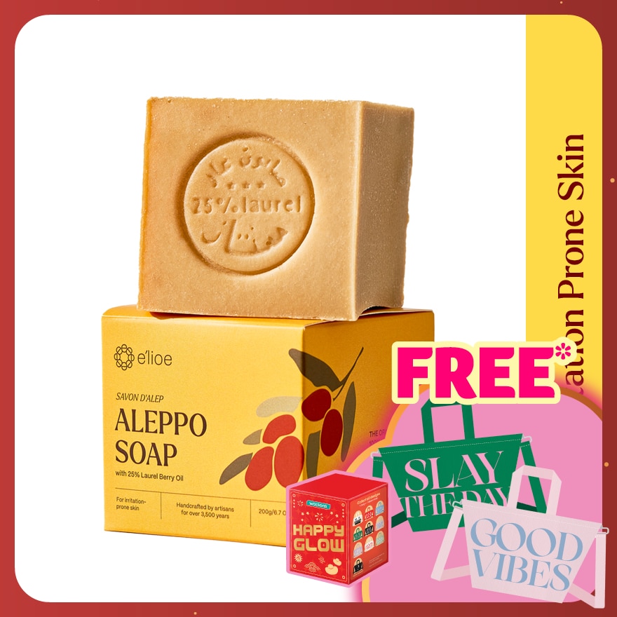 Elioe Aleppo Soap with 25% Laurel Berry Oil is specially formulated for those with irritation-prone skin. The higher percentage of laurel berry oil helps to calm and soothe redness and irritation. Our soap is specially handcrafted using the same artisanal slow-cooking and refining methods pioneered more than 3,500 years ago. Made with olive oil, a powerful moisturising antioxidant, and laurel berry oil, renowned for its soothing, antimicrobial, and antifungal properties. Use it daily to nourish, gently cleanse, and remove impurities from your face, body, and hair.