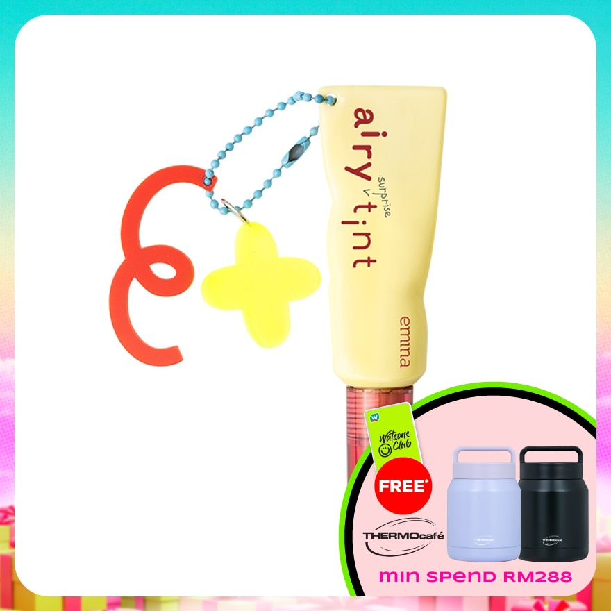 Emina Airy Surprise Tint is a lip tint with a "surprise" texture-changing element of gel-to-soft blur. The gel texture makes it easier to apply the product in 1 swipe, the soft blur texture finish at the end will give the lip result looks smooth and the lip line is invisible and feels soft. Lasts up to 12 hours without transfer, with 4 types of moist lock agents (3% trehalose, glycerin, and pentavitin, allantoin) that feel as light as if you are using nothing, with a vivid color appearance. This product can be equipped with a lipcharm (keychain), for a more "personalized" look and can be hung anywhere such as bags, keys, pouches, etc.