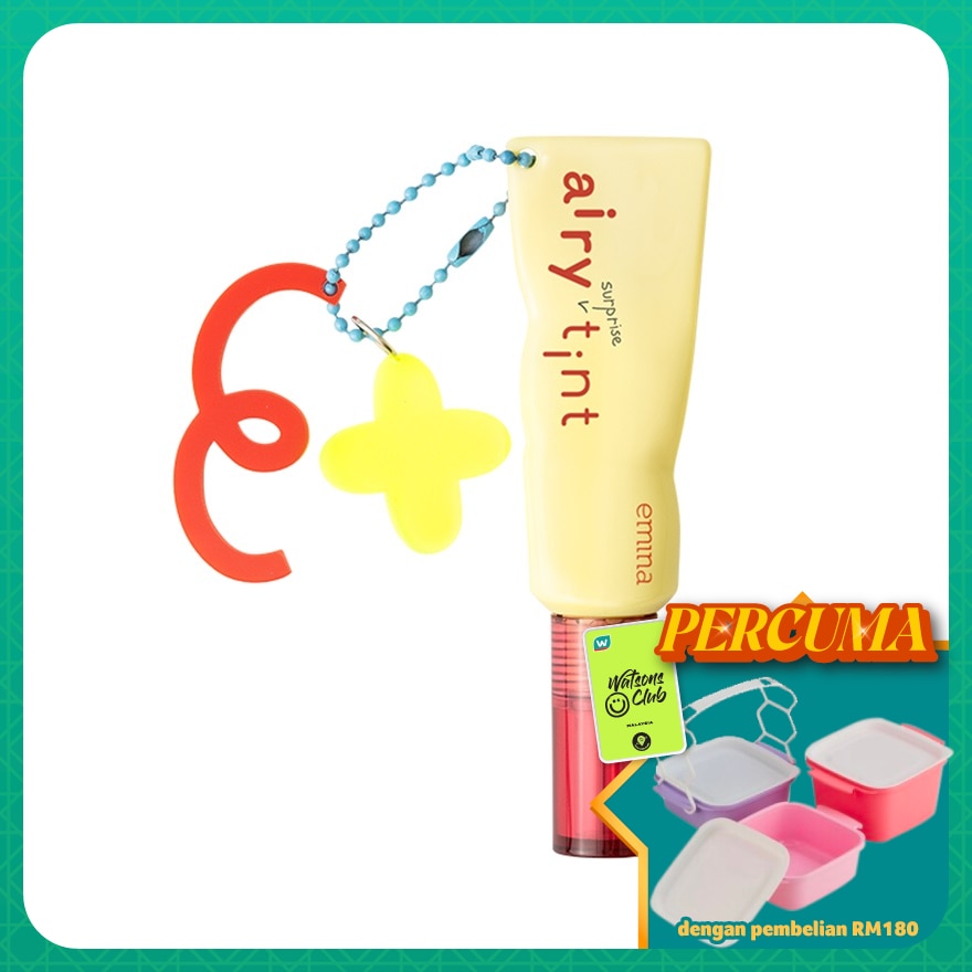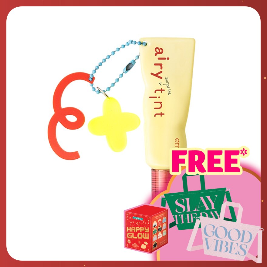 Emina Airy Surprise Tint is a lip tint with a "surprise" texture-changing element of gel-to-soft blur. The gel texture makes it easier to apply the product in 1 swipe, the soft blur texture finish at the end will give the lip result looks smooth and the lip line is invisible and feels soft. Lasts up to 12 hours without transfer, with 4 types of moist lock agents (3% trehalose, glycerin, and pentavitin, allantoin) that feel as light as if you are using nothing, with a vivid color appearance. This product can be equipped with a lipcharm (keychain), for a more "personalized" look and can be hung anywhere such as bags, keys, pouches, etc.