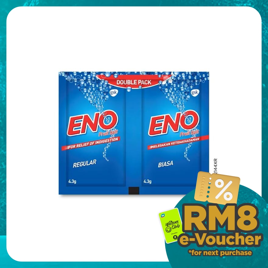 ENO Fruit Salt Original for Relief of Indigestion. A bright, white, free flowing powder with a definite crystalline sparkle.
